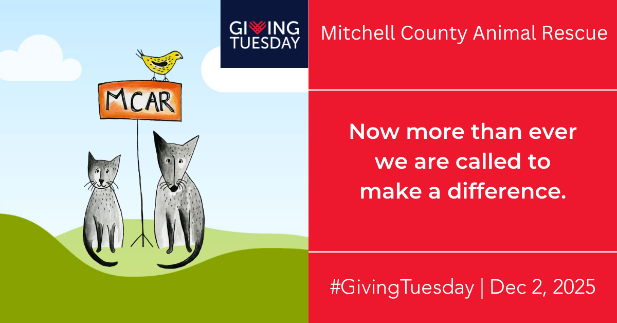GivingTuesday is a wonderful opportunity for community members, either in person or online, to be a part of the MCAR family. Donating time, skills, or money, advocating for an animal in need, performing a random act of kindness, and sharing MCAR’s social media pages with friends are ways people can join our efforts. This GivingTuesday, our campaign will benefit the animals in our care.